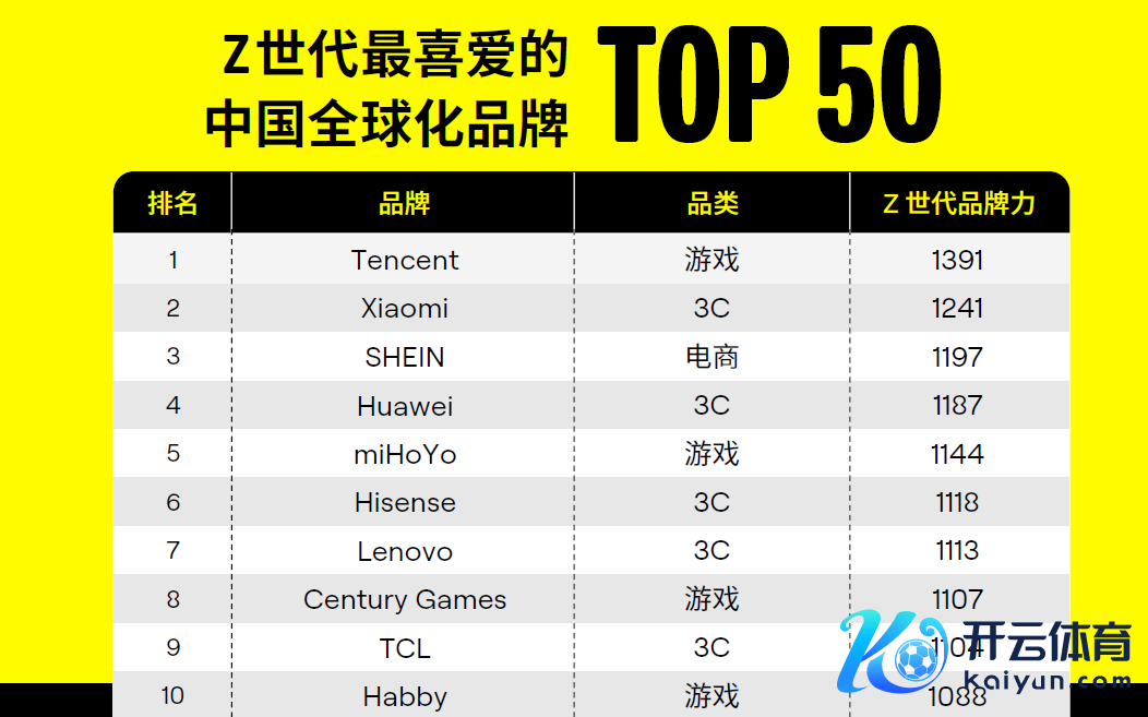这次榜单调研阴事了包括欧洲、北好意思、中东等多个阛阓中Z世代的酬酢举止与格调,包括:忽地者对品牌产生热沈聚拢,认同其功能价值;忽地者感知品牌在所属品类中的特质,承认其品牌本性;忽地者在产生需求时,会将品牌动作首选。着力高慢,比拟其他世代忽地群体,Z世代对跨境品牌严苛抉剔,对中国品牌收受度最高。“Z世代最喜爱的中国大家化品牌50强”榜单排名前三的永诀为腾讯、小米和SHEIN,腾讯在游戏品类、小米在3C品类、SHEIN在电商品类排名榜分列第一。