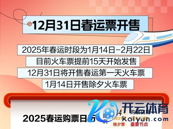 2025年春运火车票12月31日起开售,一年一度的“抢票大战”拉开序幕。哪些清楚、哪些日子的票最难抢?除夜车票需在哪天预购?用钱“加快”的第三方平台靠谱吗?这份攻略请收好——确定>>