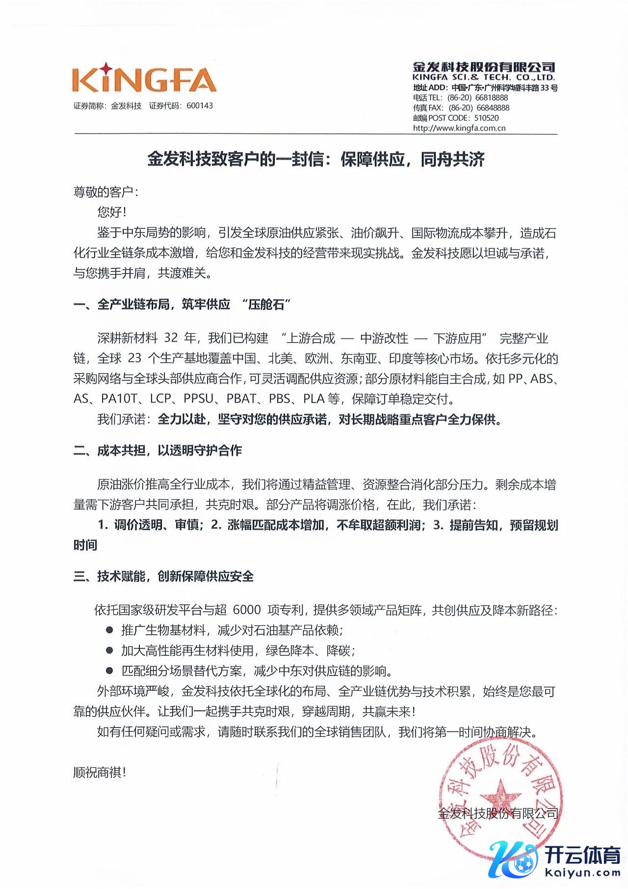 【大河财立方音信】3月7日,金发科技发布致客户信称,受中东地点影响,巨匠原油供应病笃、油价飙升、物流老本攀升,行业老本激增,公司部分居品将调加价钱。