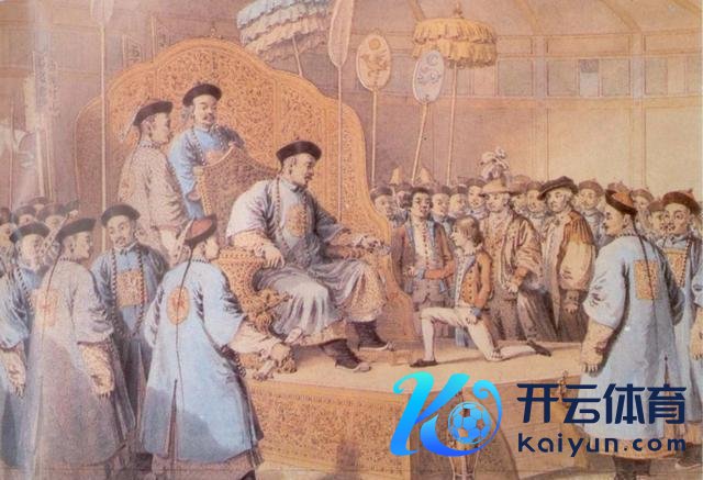 题图:马戛尔尼使团画家所作万博manbext体育官网app娱乐,展现其遐想中的场景——英国使者觐见中国天子,画面天真刻画了这一历史时刻。